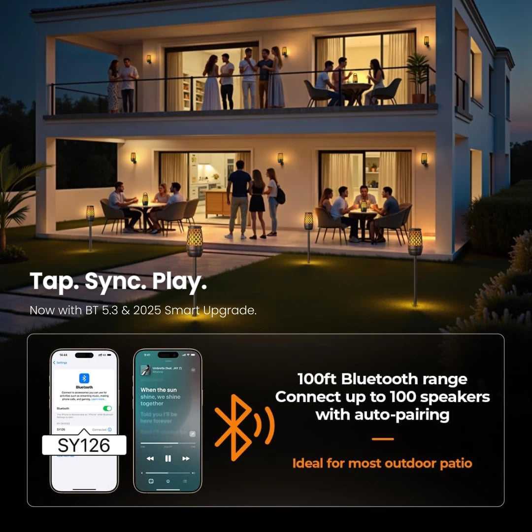 Absolutely! You can sync up to 100 GlowBeat Flame speakers at once for immersive 360Β° surround sound.