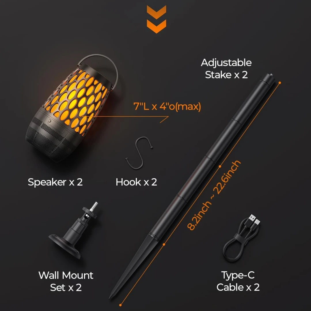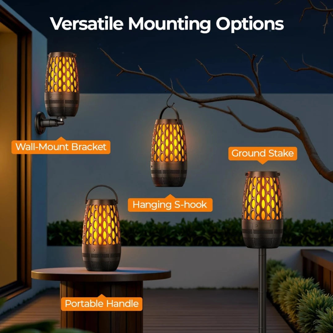 You can use 4 mounting options: ground stake, wall mount, hanging S-hook, or handle carry. Designed for effortless portability and style.